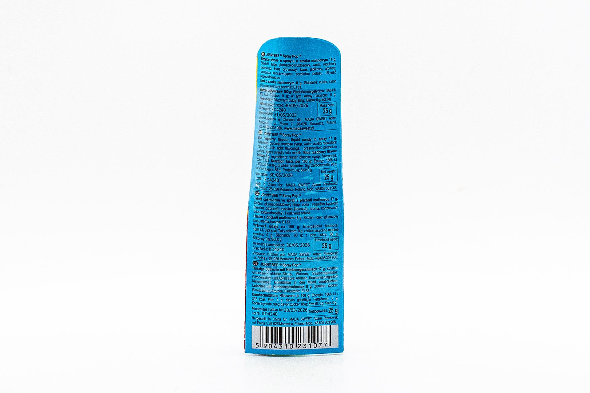 Жидкая конфета-спрей и леденец Spray Pop Johny Bee 25 грамм88,23 руб. за штуку (в упак. 18 шт.) |