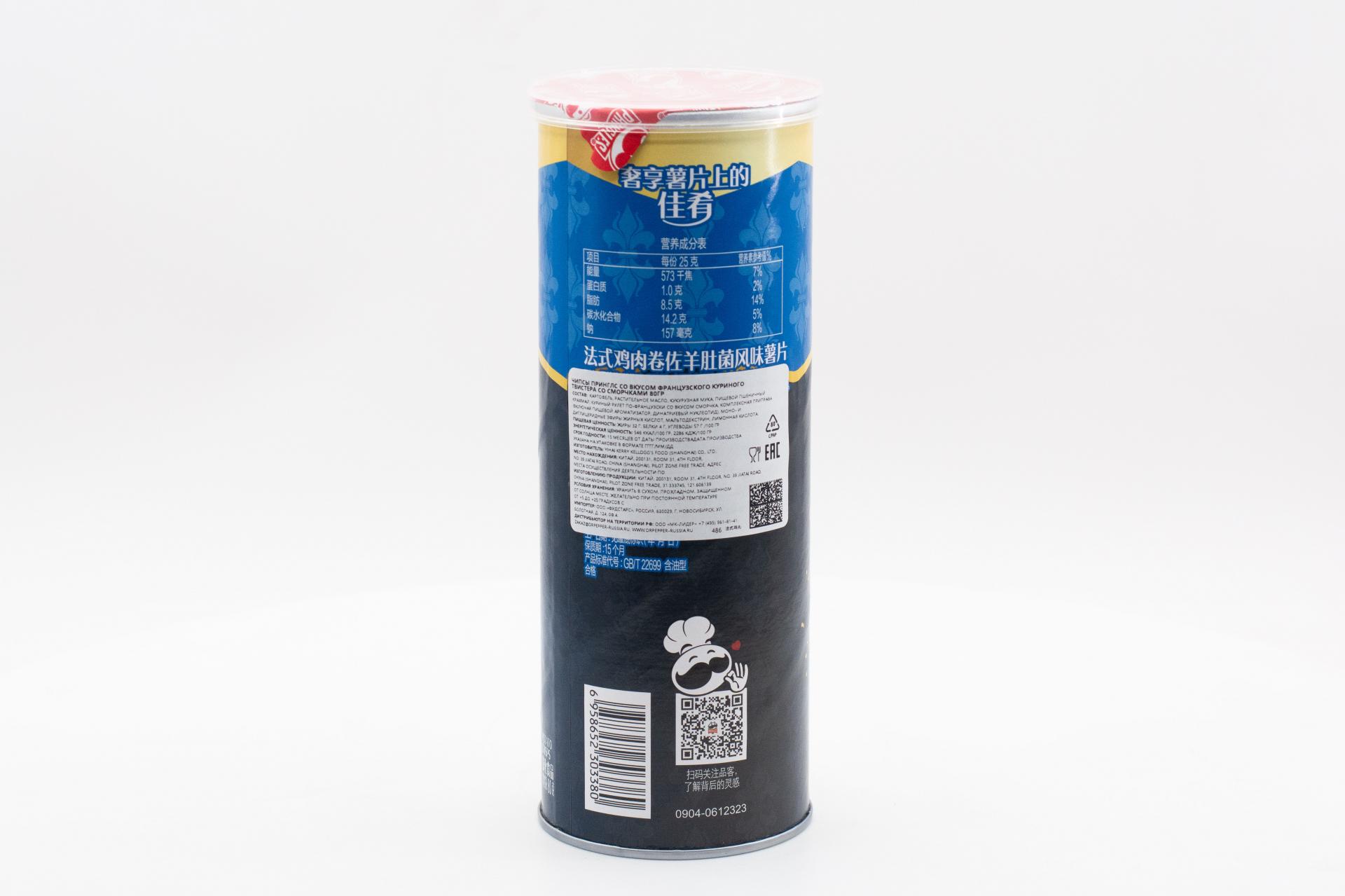 Чипсы Pringles со вкусом французским куриным рулетом и грибами-сморчками (Китай) 80г129,90 руб. за штуку (в упак. 24 шт.) |