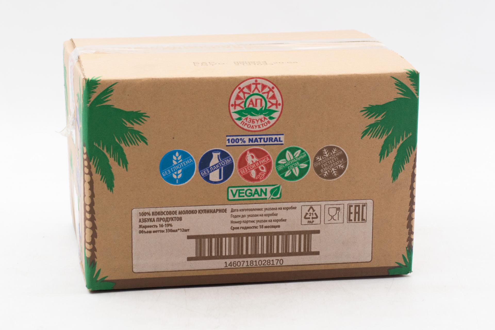 Кокосовое молоко кулинарное Азбука Продуктов жир.16-19% 330 мл140,95 руб. за штуку (в упак. 12 шт.) |