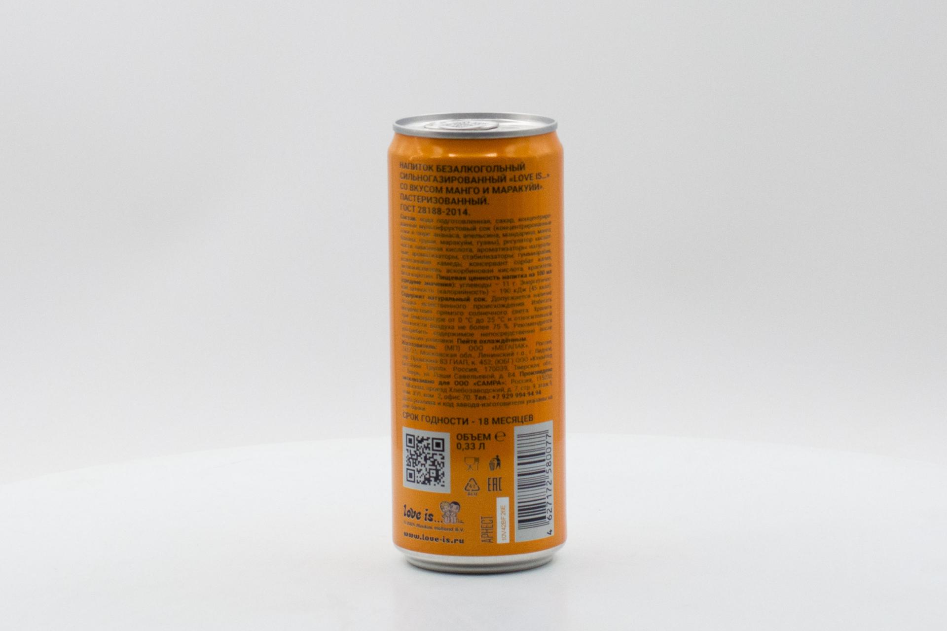 Напиток б/а газ. Love Is со вкусом манго-маракуйя 330 мл ж/б66,94 руб. за штуку (в упак. 12 шт.) |