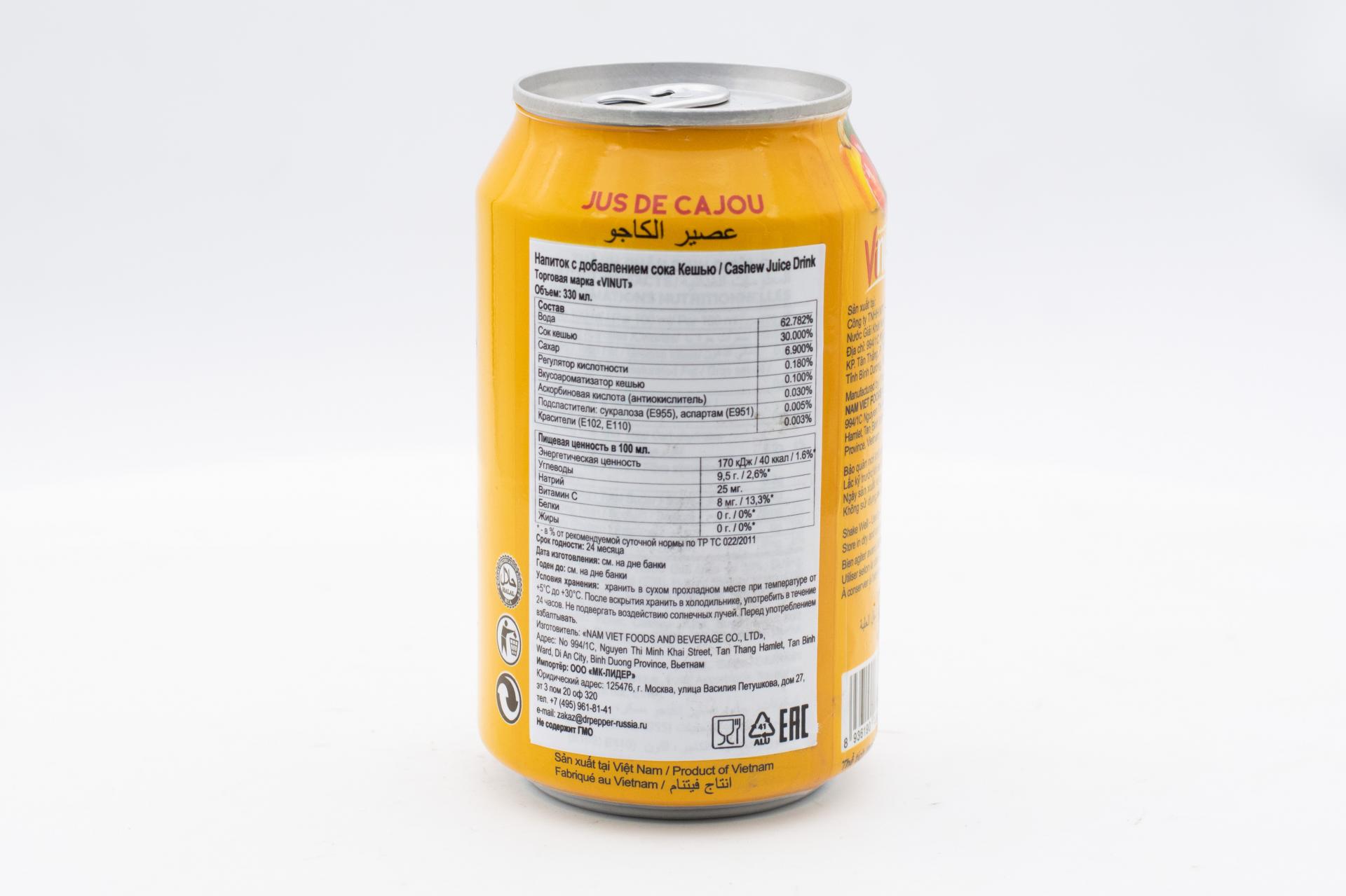 Напиток сокосодержащий VINUT с добавлением сока Кешью 330мл49,99 руб. за штуку (в упак. 24 шт.) |