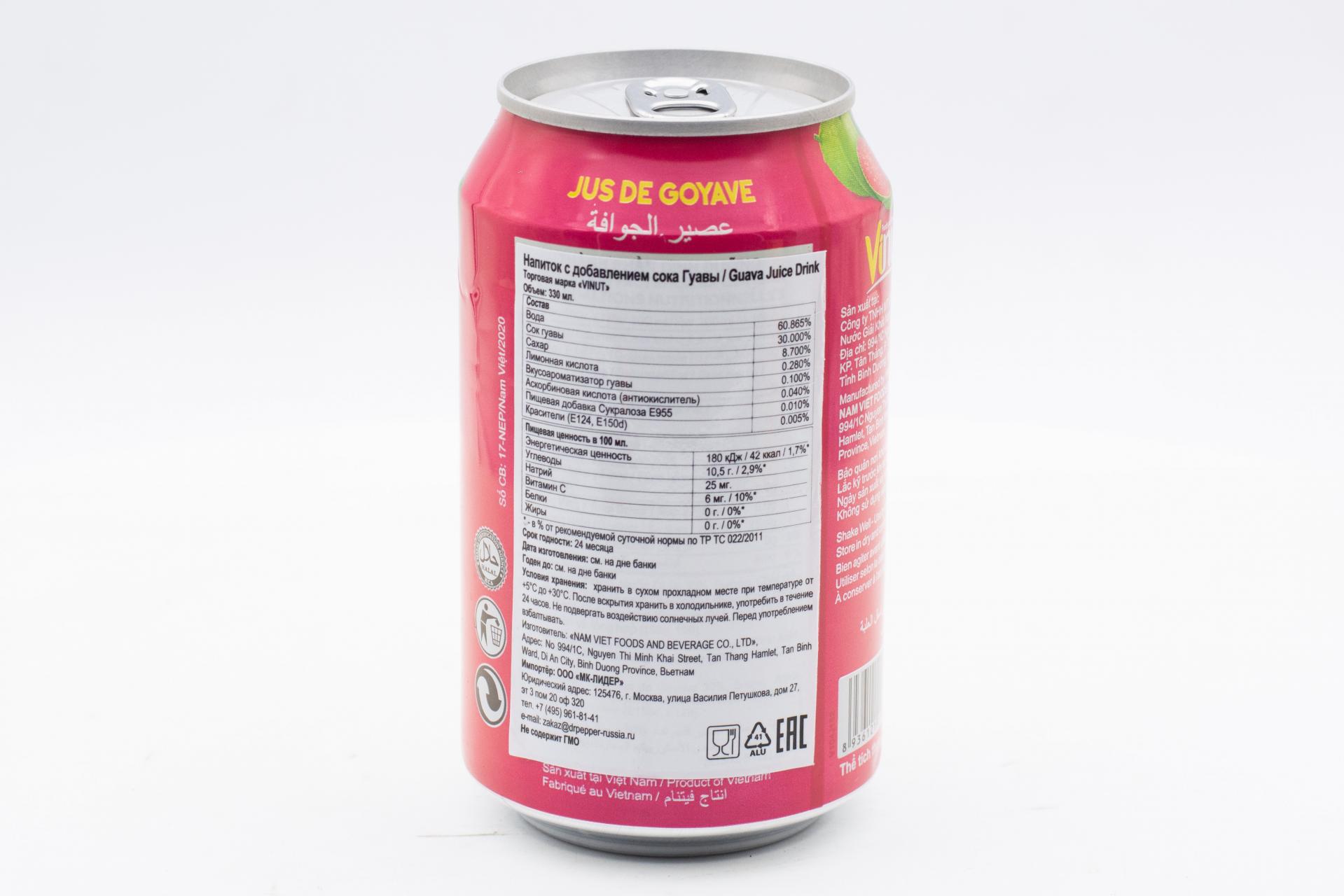 Напиток сокосодержащий VINUT с соком Гуавы 330 мл49,99 руб. за штуку (в упак. 24 шт.) |
