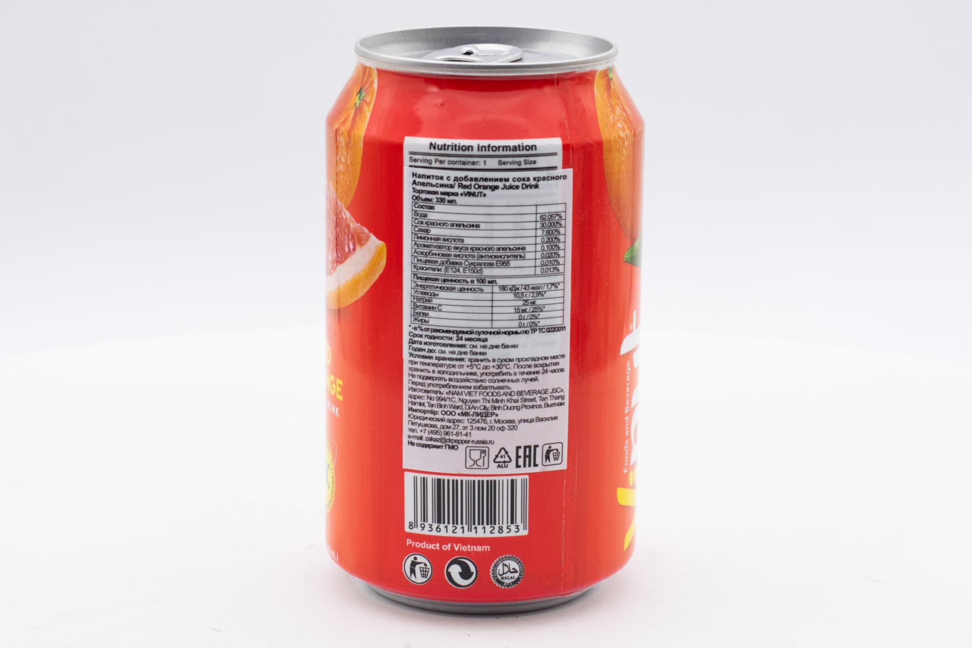 Напиток сокосодержащий Vinut с соком красного апельсина 330мл49,99 руб. за штуку (в упак. 24 шт.) |