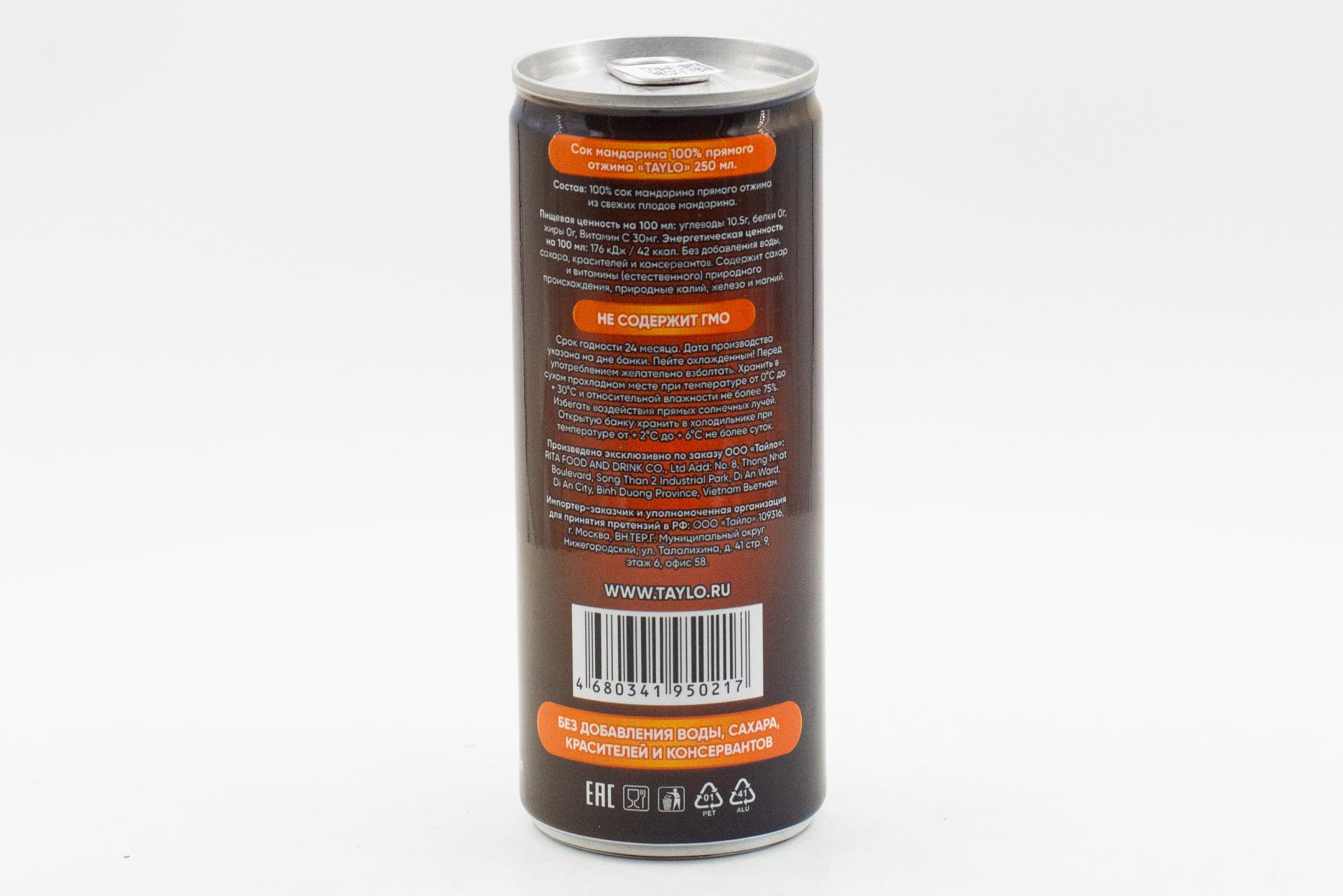 Сок Taylo (Тайло) Мандарин 100% 250мл77,50 руб. за штуку (в упак. 24 шт.) |